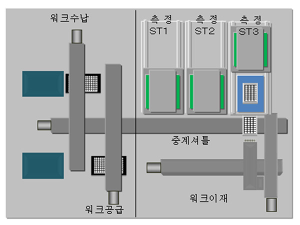 기압센서의 온도특성검사를 실시하는 장비입니다. 워크는 트레이로 공급하고, 160개 단위로 검사한 후, 수납트레이, NG박스에 선별하여 회수합니다.