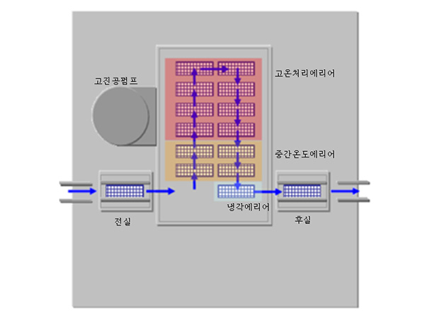 리드 가용접 혹은 심 용접 공정의 직전에 진공 어닐을 실시하는 장비입니다. 용접 공정의 처리 속도에 맟추어, 캐리어 단위로 어닐 처리를 실시합니다.