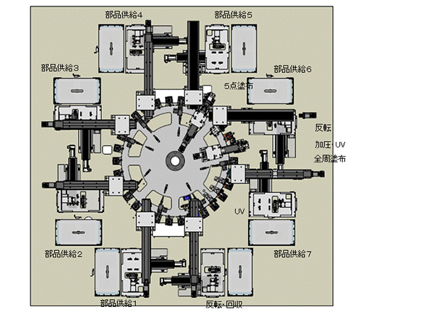 - 各部品の供給順番を変えることで、落とし込み・積み上げ式の対応ができます。