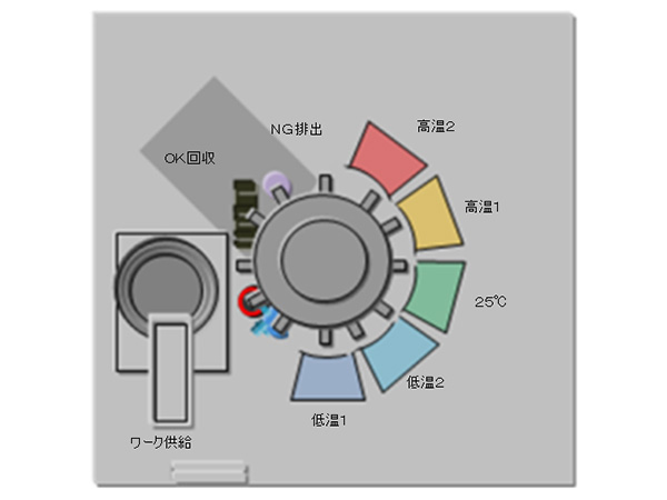 • 部品供給~温特検査~部品回収までの工程を一台の装置で行います。